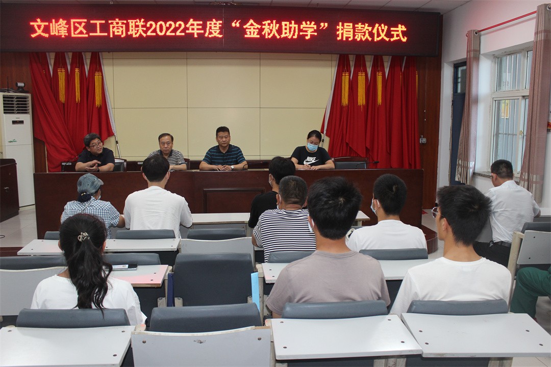 感動(dòng)的場(chǎng)面,讓莘莘學(xué)子沐浴著春天里的陽(yáng)光;捐贈(zèng)的雙手,讓貧困家庭感受到春天般的溫暖。為幫助2022年度貧困大學(xué)新生順利入學(xué),文峰區(qū)工商聯(lián)于8月23日下午在文峰區(qū)政府二樓會(huì)議室舉行2022年文峰區(qū)工商聯(lián)、慈善總會(huì)“金秋助學(xué)”捐款儀式,文峰區(qū)委常委、統(tǒng)戰(zhàn)部長(zhǎng)王悅,副區(qū)長(zhǎng)湯鵬,政協(xié)副主席、工商聯(lián)主席朱艷麗,工商聯(lián)名譽(yù)主席田運(yùn)海,慈善總會(huì)副會(huì)長(zhǎng)郭獻(xiàn)臣,民政局主任程治民出席了今天捐助儀式。捐助儀式由統(tǒng)戰(zhàn)部副部長(zhǎng)、工商聯(lián)黨組書記李海平書記主持。